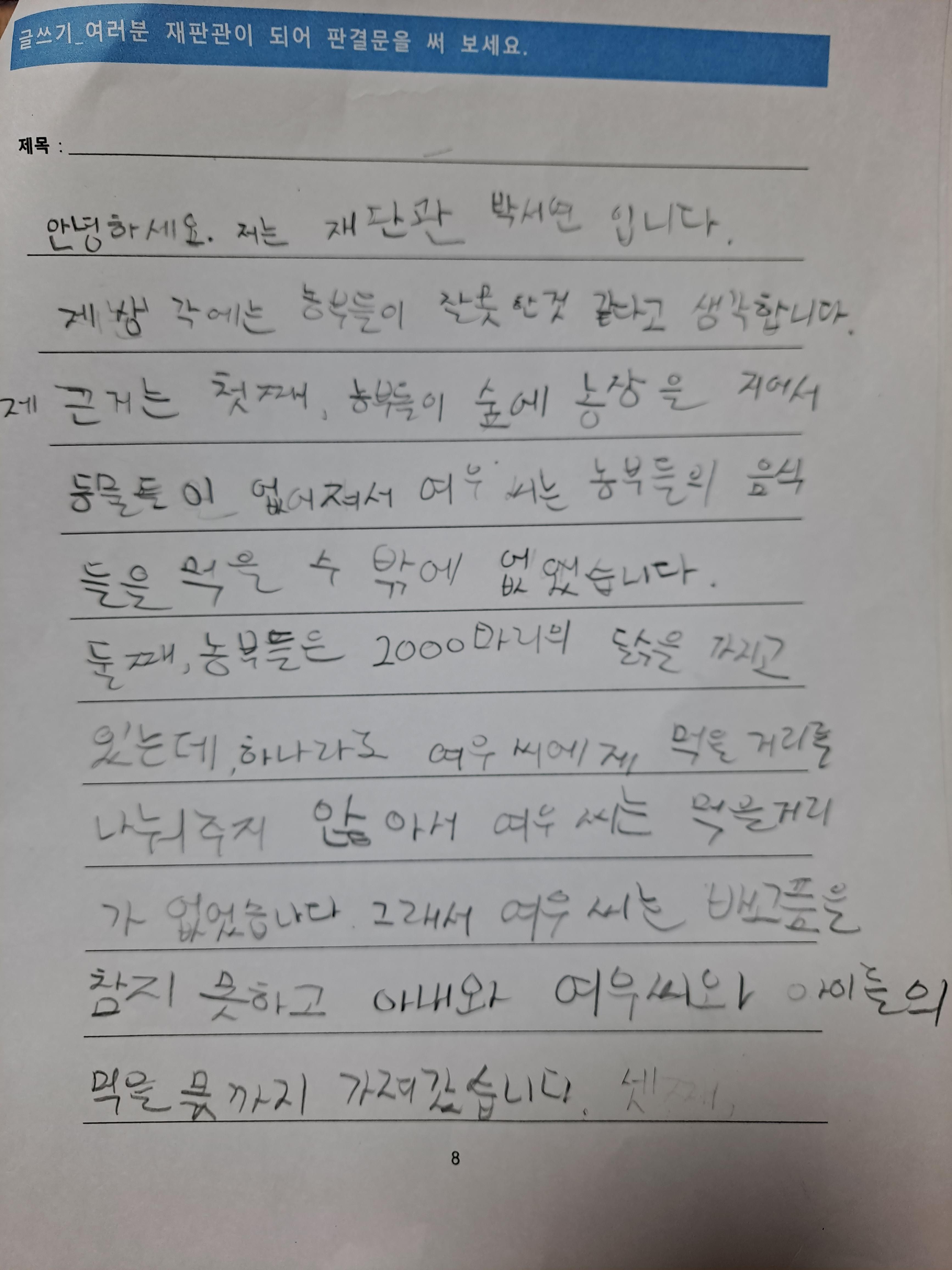 '왜 여우 씨는 도둑질을 했을까?'라는 질문을 통해 농부들의 환경 파괴와 그들의 욕심에 대해 생각해볼 수 있었습니다. 만약 이런 질문을 던지지 않았다면, 그리고 질문에서 파생되는 또다른 질문을 파고들지 않았다면, 텍스트에 대한 깊이 있는 이해에 도달하지 못했을 것입니다. 그러므로 책을 통해 아이들의 생각을 확장시키기 위해서는 무엇보다 핵심적인 질문을 그들에게 던질 수 있어야 합니다. 더 좋은 것은 이런 질문을 반복해서 아이들 스스로 그런 질문을 만들어내도록 하는 것입니다.