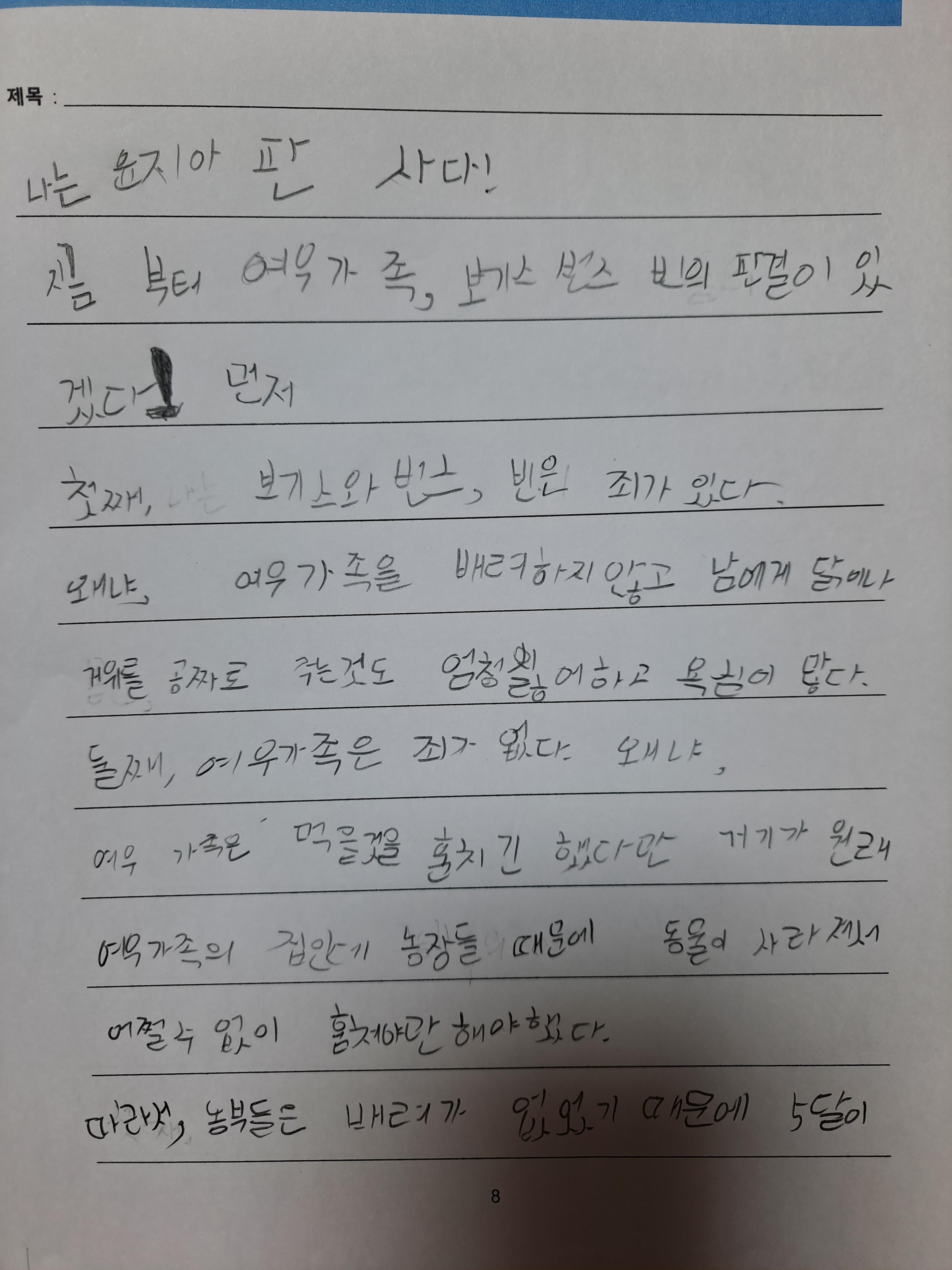 여우가 가족들을 위해 농장의 가축들을 도둑질한 이유를 조금 더 폭넓게 이해하기 위해 약간의 상상력이 필요합니다. 일반적으로 여우는 숲 속에 사는 다른 동물들을 사냥해서 먹이로 삼습니다. 그런데 여우가 생존을 위해 굳이 사냥 대신 절도를 할 수밖에 없었던 데는 그럴 만한 사정이 있었던 것은 아닐까요.